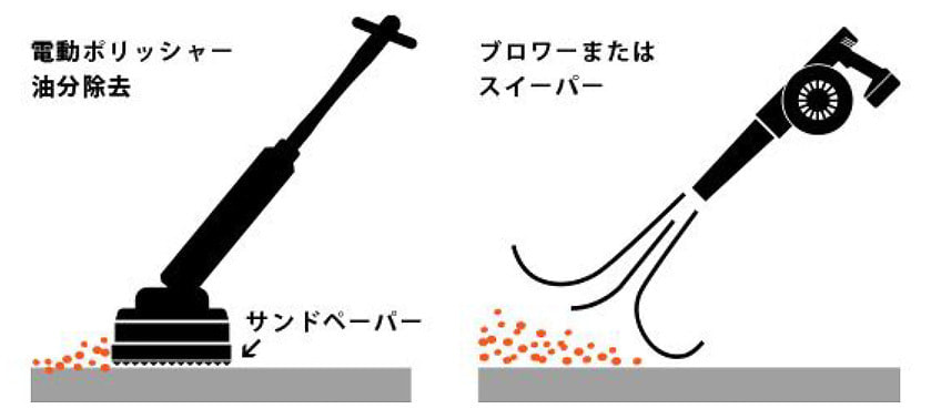 ・必要に応じて電動ポリッシャーなどで油分を除去