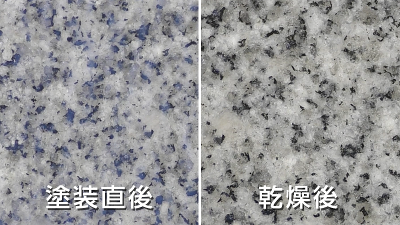 - コンクリート面に塗装しますと、濡れ色になり、未塗装面と比較すると色差が発生します